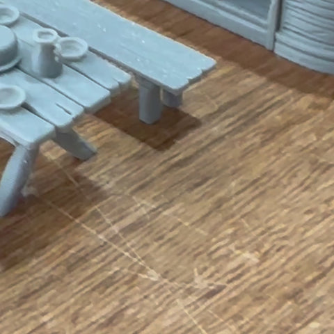 Each piece is 3D printed in durable PLA plastic with woodgrain and detail that looks great as-is and even better painted. You can set up a full tavern bar, line the walls of an inn, or scatter the tables and benches to create a common room for your adventurers.