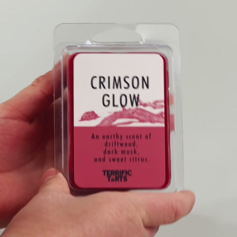 Crimson Glow is a wax melt handmade from soy wax. It has an earthy blend of dark musk and sweet citrus, and the fragrance is infused with cedar, patchouli, and clove leaf essential oils. It's perfect for use while playing games, taking a hot bath, or relaxing with a good book.