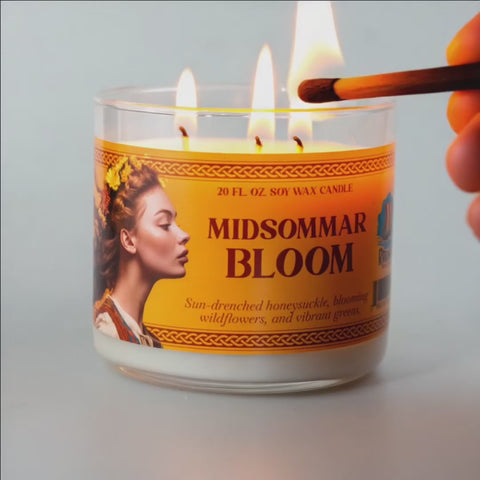 When summer reaches its peak and the sun barely sets, wildflowers carpet the meadows where ancient celebrations once honored the light. Midsommar Bloom captures the intoxicating beauty of the summer solstice, when nature reaches its full power and the air grows heavy with the scent of blooming vines. Hand-poured in Bluffdale, Utah as a 20-ounce soy wax candle in a hefty 4-inch glass jar with three cotton wicks that flicker like bonfires on the longest day of the year.