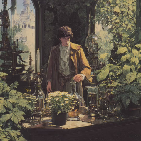 A rich, earthy heart of moss and patchouli is grounded by a warm note of balsam, conjuring the atmosphere of a secluded workshop filled with ancient secrets and simmering cauldrons. The top notes of peppercorn and coriander offer a hint of mysterious spice, while the sweet, spicy, and herbaceous essence of basil is woven throughout, tying the entire experience together.