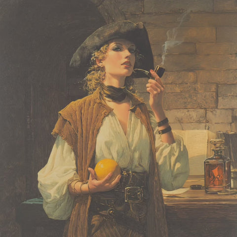 Waves of fresh sea salt and bright orange peel mingle with the invigorating essence of eucalyptus, carrying the thrill of the open ocean. These notes are grounded by a heart of rich teakwood and earthy moss, reminiscent of a ship's timber and a distant coastline. The true treasure lies beneath, in the base notes of sweet tobacco leaves, warm oak, and golden honey, evoking the scent of a shared grog and well-earned rest after a long voyage.