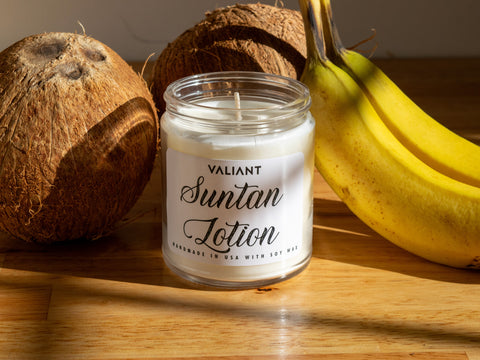 Looking for a candle that smells like summer? Look no further than Suntan Lotion! This soy wax candle smells like the beach, with hints of coconut and banana suntan lotion. It's the perfect way to enjoy the summer scents all year round!